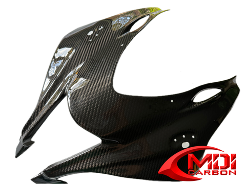Each 10R 2016-2020 Front Fairing is handcrafted using multiple layers of 3K carbon fiber fabric, vacuum-infused with high-grade epoxy resin, and cured under precise temperature and pressure conditions. This advanced manufacturing process ensures exceptional strength-to-weight ratio and a flawless finish that showcases the distinctive carbon weave pattern.